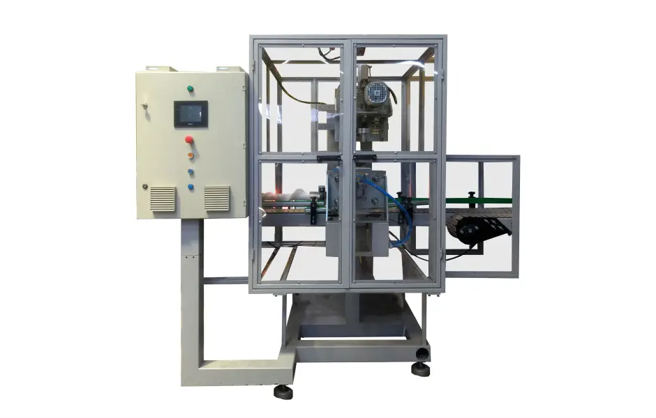 Degolador estacionário para corte preciso de frascos soprados. Solicite orçamento com a UART Automação e avalie a solução ideal para sua linha.